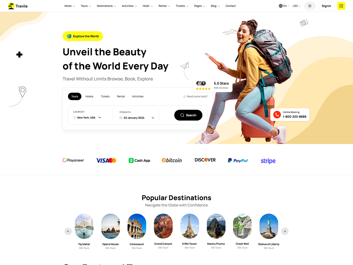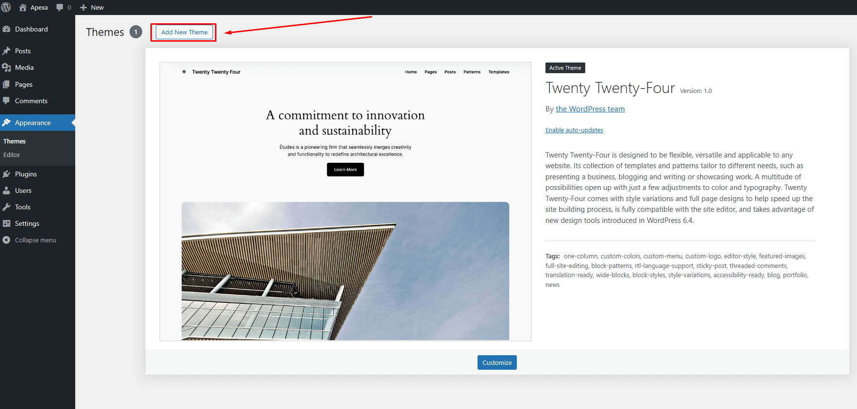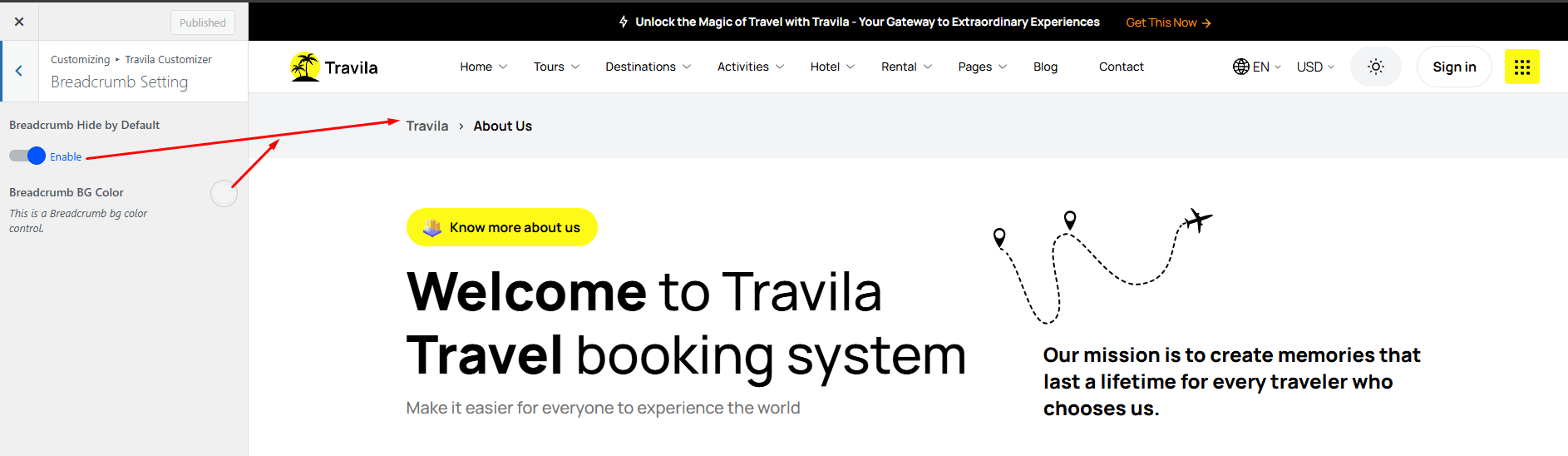 Once uploaded, activate the theme by heading to the “Themes” menu in the WordPress Dashboard. Locate the Travila Theme and hit “Activate”.